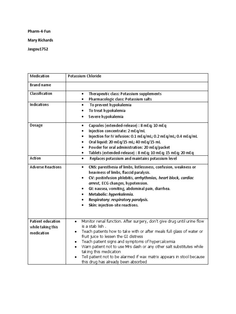 Pharm 4 Fun Mary Richards Potassium Chloride